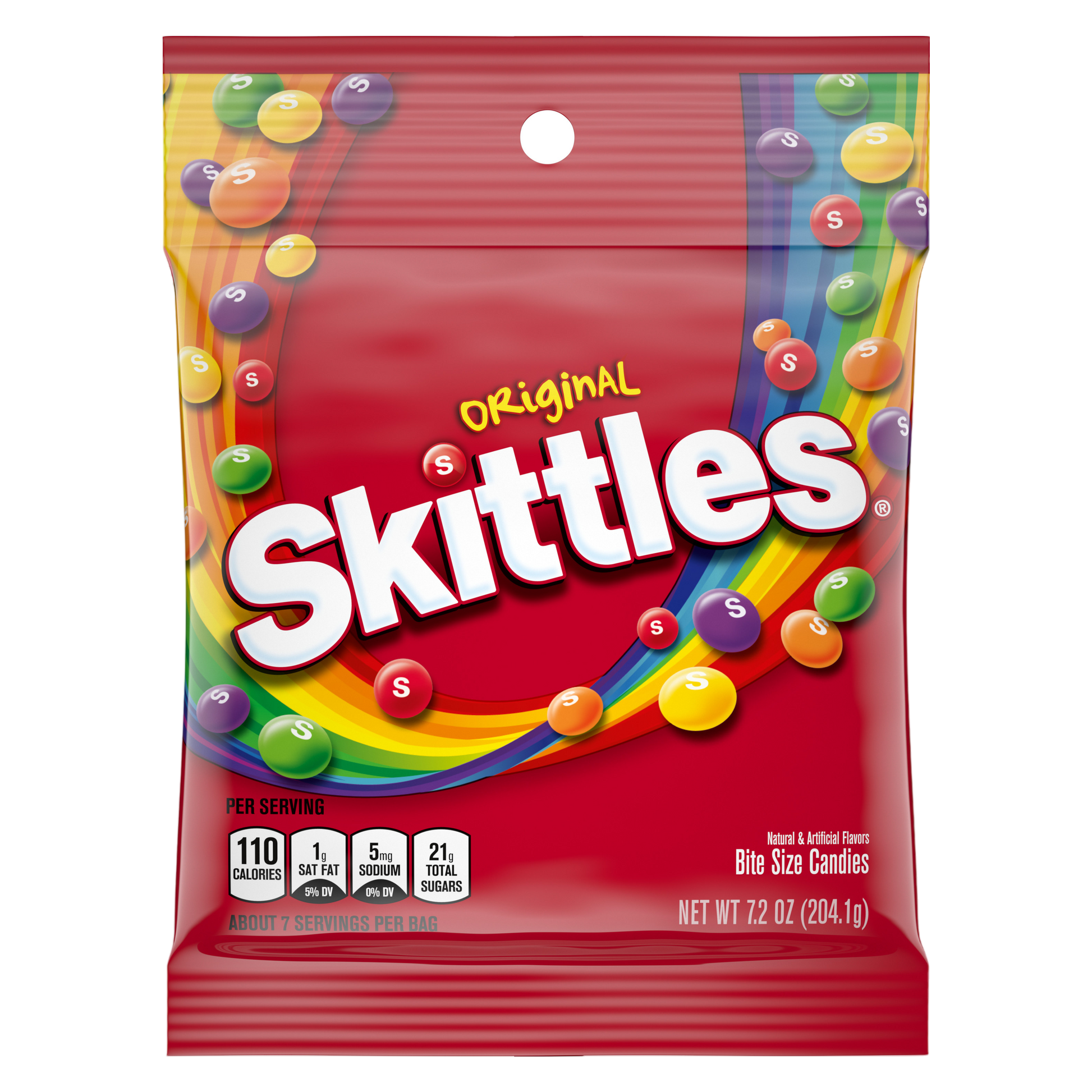 “We Apologize The Rainbow” for green apple. The original rainbow you’ve been waiting to taste again is back. SKITTLES Original chewy candy welcomes the citrus flavor, Lime. This bag of SKITTLES Original fruit candy is packed with the classic flavor variety of strawberry, lemon, orange, grape, and lime. This bite size fruity candy is deliciously sweet and can be enjoyed with family and friends. Enjoy SKITTLES chewy candy while watching a movie or scrolling through your favorite timeline. They are the perfect party supplies for any special occasion including filling candy buffets, packing Easter Eggs, or pairing with flowers on Valentine’s Day. There's no wrong way to enjoy the fruity, mouth-watering taste of SKITTLES Original candy assortment especially now that Lime is back. It’s time to celebrate the return of the LIME SKITTLE! Order your bag of SKITTLES Original chewy candy today and reintroduce your taste buds to the original taste of the rainbow.