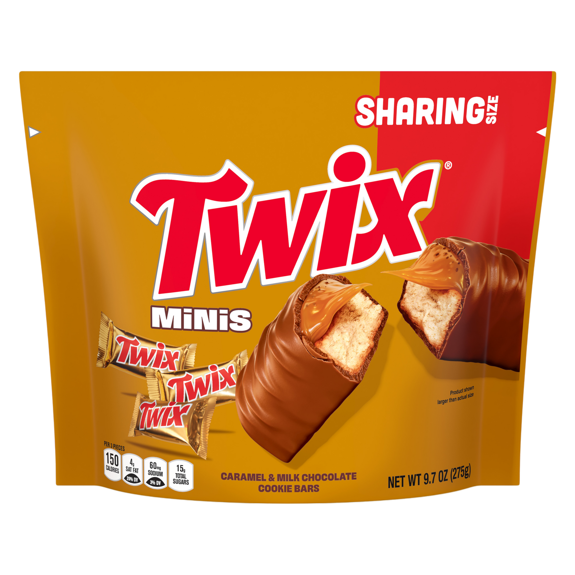 Twix Miniatures (wrapped) in a renovated bag format that stands up easier on shelf